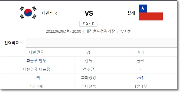 한국 vs 칠레 친선경기 티켓 예매링크 바로가기