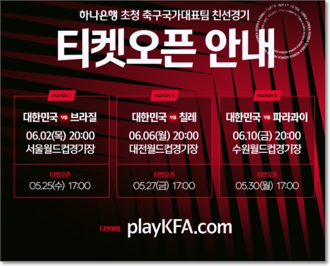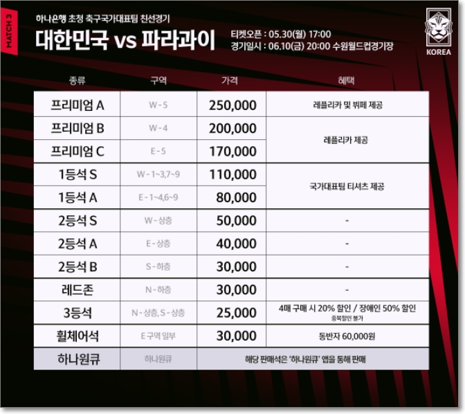 한국 vs 파라과이 경기 티켓 예매링크 바로가기
